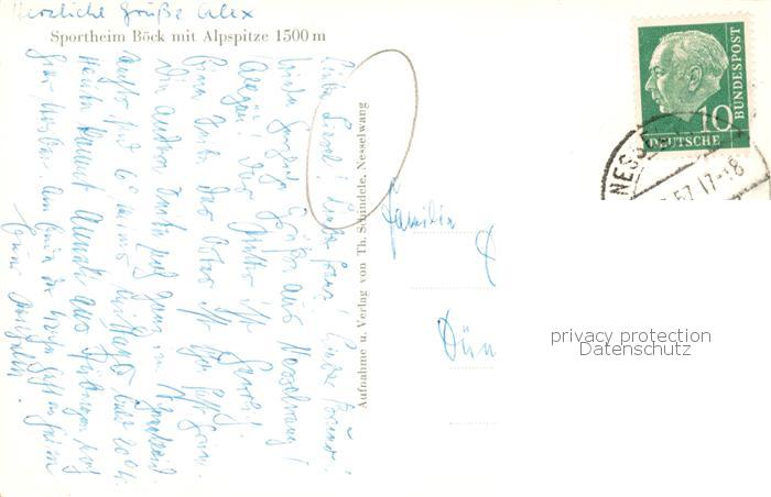 73802996 Nesselwang Allgaeu Bayern Sportheim Boeck mit Alpspitze postalisch gelaufen Erhaltung siehe scans [WerneD78] alte Postkarte Wern Katcode 11110009777153