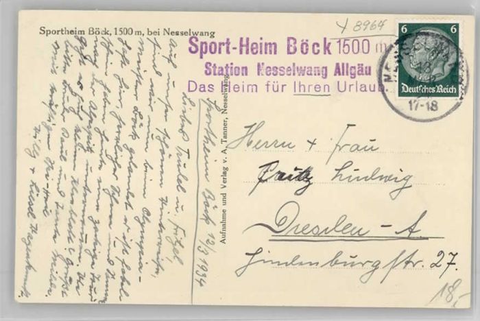 40246293 Nesselwang Allgaeu Bayern Sportheim Boeck x 1934 postalisch gelaufen Alte Ansichtskarte Postkarte alte Postkarte Katcode 11110009777153