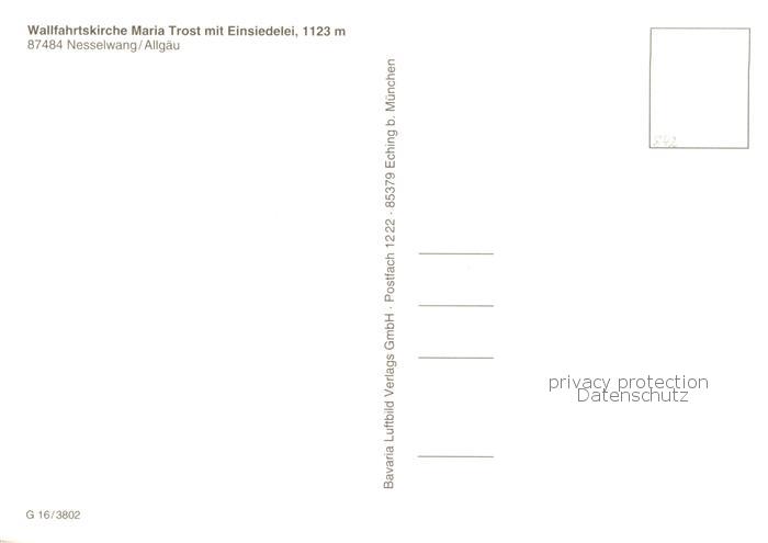 73791306 Nesselwang Allgaeu Bayern Wallfahrtskirche Maria Trost mit Einsiedelei Fliegeraufnahme postalisch nicht gelaufen Erhaltung siehe scans [WerneD78] Wern Katcode 11110009777153