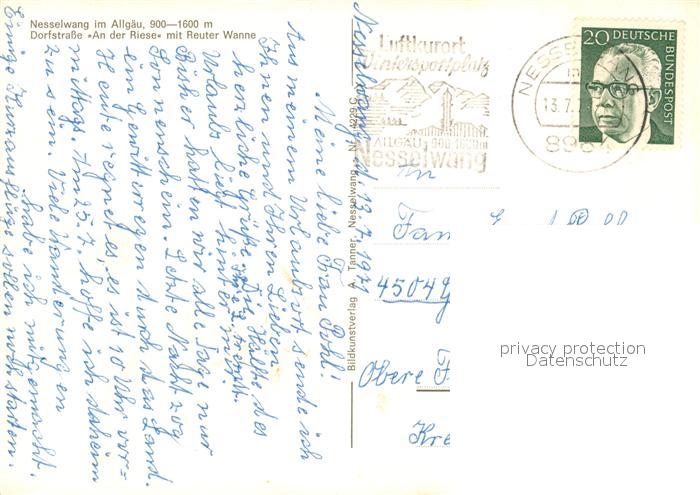 73129295 alte Postkarte Nesselwang Dorfstrasse Reuter wanne An der Riese postalisch gelaufen Erhaltung siehe scans [LiesaD40] KatCode: 11110009777153