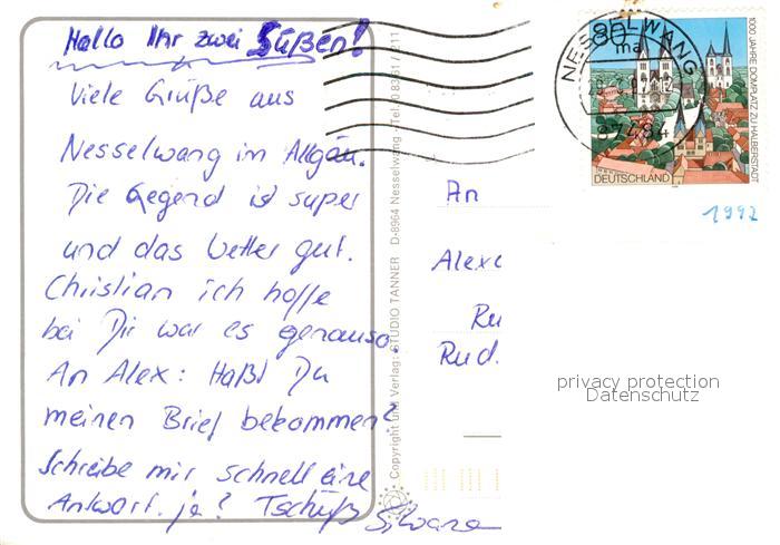 73040919 alte Postkarte Nesselwang Feriensiedlung Reichenbach Swimming Pool Wassertreten Landschaftspanorama See Alpenblick postalisch gelaufen Erhaltung siehe scans [FriedD77] KatCode: 11110009777153