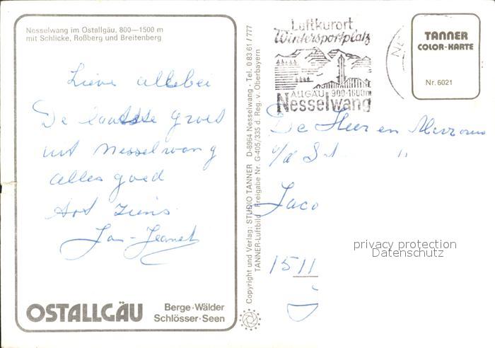 72921315 alte Postkarte Nesselwang Fliegeraufnahme mit Schlicke Rossberg Breitenberg postalisch gelaufen Erhaltung siehe scans [LiesaD40] KatCode: 11110009777153