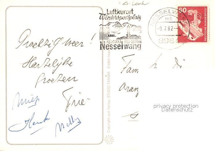 73177928 alte Postkarte Nesselwang Gesamtansicht mit Alpenpanorama Kirche Attlesee Sesselbahn Alpspitze Allgaeuer Alpen postalisch gelaufen Erhaltung siehe scans [FriedD77] KatCode: 11110009777153