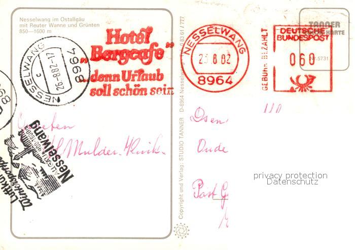 73306164 alte Postkarte Nesselwang mit Reuter Wanne und Gruenten postalisch gelaufen Erhaltung siehe scans [WerneD78] KatCode: 11110009777153