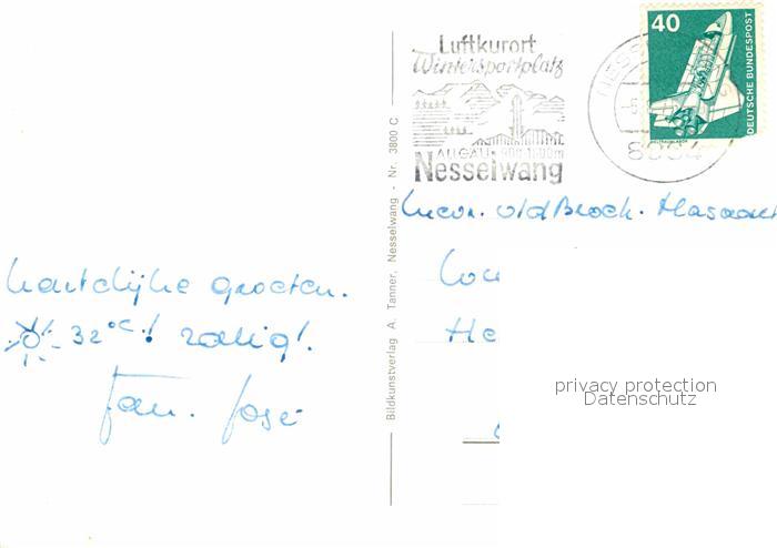 72858952 alte Postkarte Nesselwang Ortsansicht mit Kirche Alpenpanorama Alpspitze Sesselbahn Attlesee postalisch gelaufen Erhaltung siehe scans [FriedD77] KatCode: 11110009777153