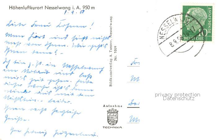 73608314 alte Postkarte Nesselwang Ortsansicht mit Kirche Hoehenluftkurort Alpen postalisch gelaufen Erhaltung siehe scans [FriedD77] KatCode: 11110009777153