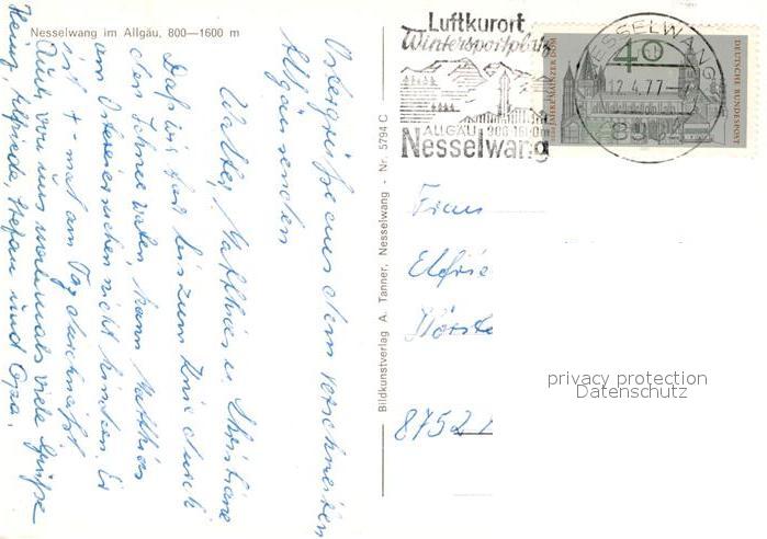 73177927 alte Postkarte Nesselwang Ortsmotiv mit Blick zur Kirche im Winter postalisch gelaufen Erhaltung siehe scans [FriedD77] KatCode: 11110009777153