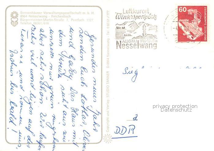73063432 alte Postkarte Nesselwang Sonnenhaeuser Feriendorf postalisch gelaufen Erhaltung siehe scans [KathaD81] KatCode: 11110009777153