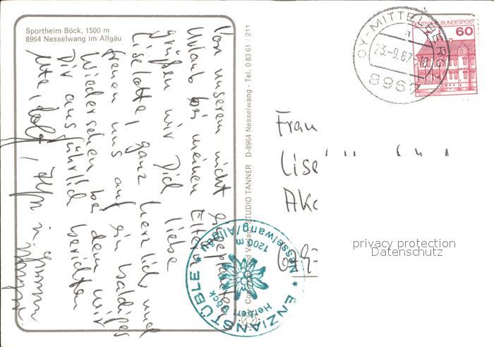 alte Postkarte Nesselwang Sportheim Boeck postalisch gelaufen Erhaltung siehe scans