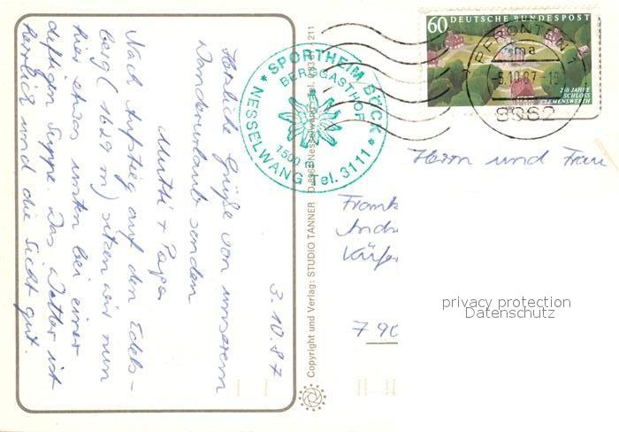 73324517 alte Postkarte Nesselwang Sportheim Boeck Panorama Sessellift Terrasse postalisch gelaufen Erhaltung siehe scans [WerneD78] KatCode: 11110009777153