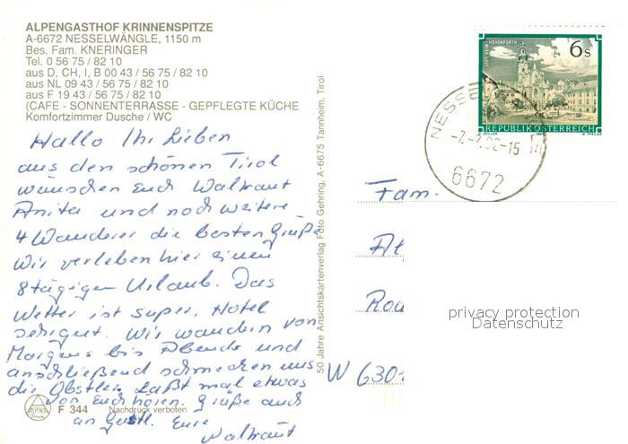 73586740 alte Postkarte Nesselw?ngle Tirol Alpengasthof Krinnenspitze postalisch gelaufen Erhaltung siehe scans [PaolaD17] KatCode: