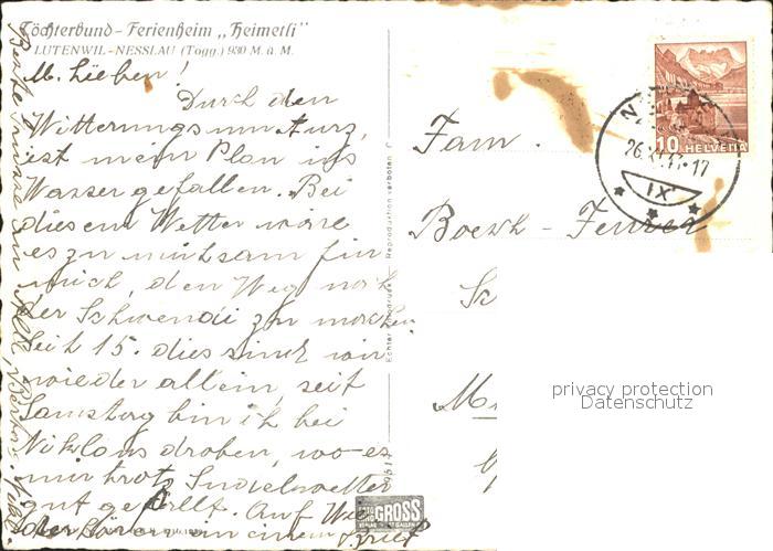 11630932 alte Postkarte Nesslau Toechterbund Ferienheim Heimetli postalisch gelaufen Erhaltung siehe scans KatCode: 11470190585828