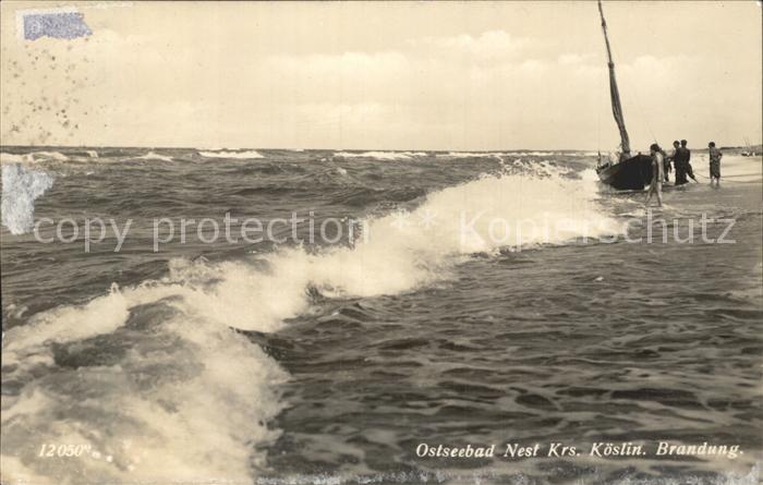 old postcard Nest Koeslin Ostseebad Brandung postalisch gelaufen Erhaltung siehe scans