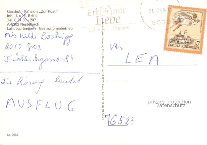 12973054 alte Postkarte Nestelbach Graz Gasthof Zur Post postalisch gelaufen Erhaltung siehe scans [NatalD47] KatCode: 11390221060631