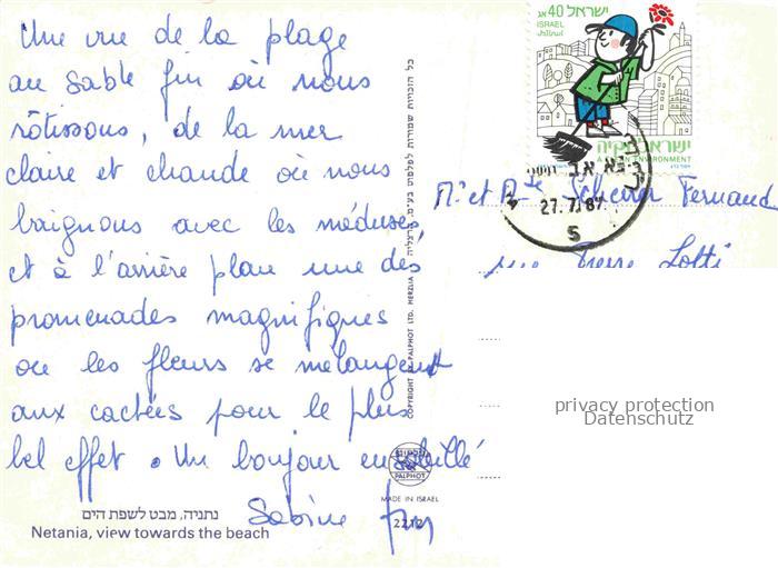 74031278 old postcard Netanya View towards the beach postalisch gelaufen Erhaltung siehe scans [FriedD77] KatCode: 13080