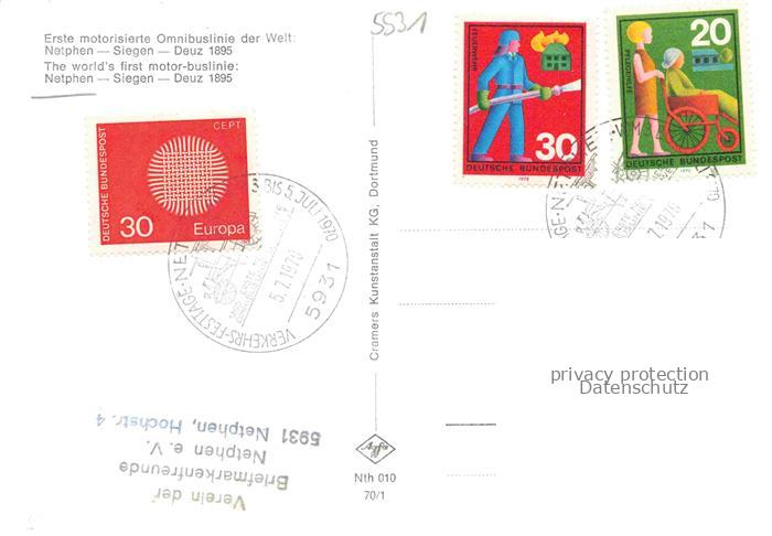 74055201 alte Postkarte Netphen Erste motorisierte Omnibuslinie der Welt Netphen Siegen Deuz Zeichnung postalisch gelaufen Erhaltung siehe scans [WerneD78] KatCode: 11110005970032