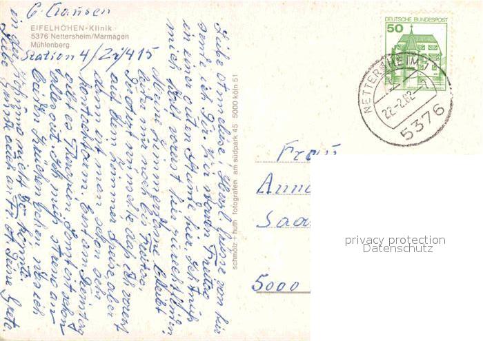72701278 alte Postkarte Nettersheim Eifelhoehen Klinik postalisch gelaufen Erhaltung siehe scans [KathaD79] KatCode: 11110005366032