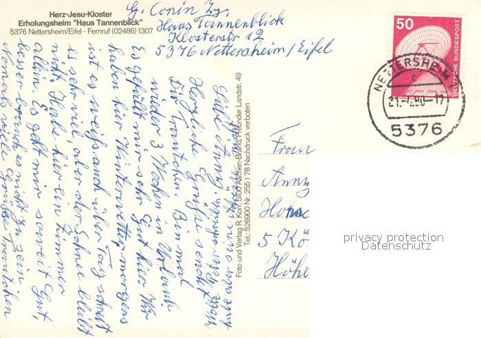 73649091 alte Postkarte Nettersheim Herz Jesu Kloster Erholungsheim Haus Tannenblick postalisch gelaufen Erhaltung siehe scans [FriedD77] KatCode: 11110005366032