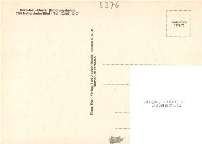 73706701 Nettersheim Herz Jesu Kloster Erholungsheim postalisch nicht gelaufen Erhaltung siehe scans [WerneD78] KatCode: 11110005366032