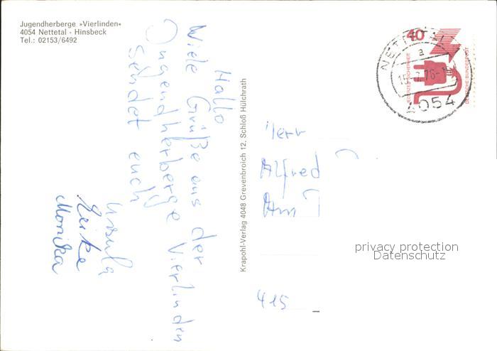 72921221 alte Postkarte Nettetal Jugendherberge Vierlinden postalisch gelaufen Erhaltung siehe scans [LiesaD40] KatCode: 11110005166016