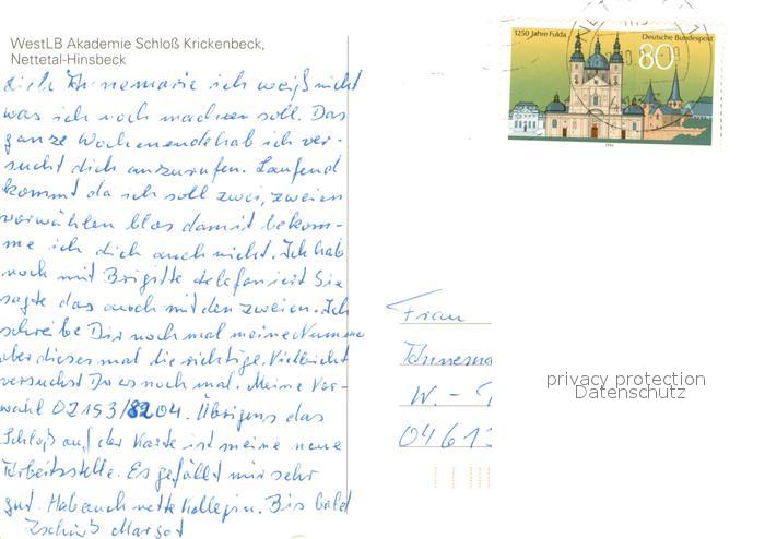 73747585 alte Postkarte Nettetal West LB Akademie Schloss Krickenbeck Fliegeraufnahme postalisch gelaufen Erhaltung siehe scans [WerneD78] KatCode: 11110005166016