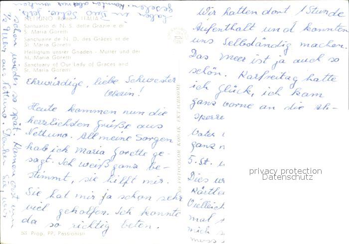 Nettuno Santuario di Nostra signora delle Grazie e di Santa Maria Goretti postalisch nicht gelaufen Erhaltung siehe scans