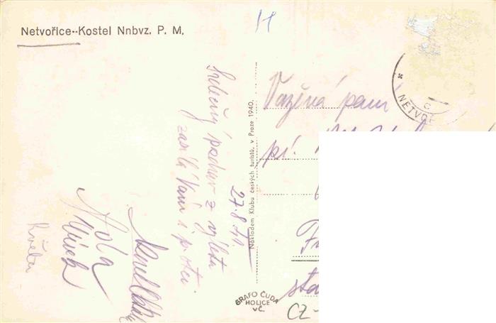 73975403 old postcard Netvorice Benesov u Prahy Beneschau CZ Kostel Kirche Teich postalisch gelaufen Erhaltung siehe scans [FriedD77] KatCode: 11520