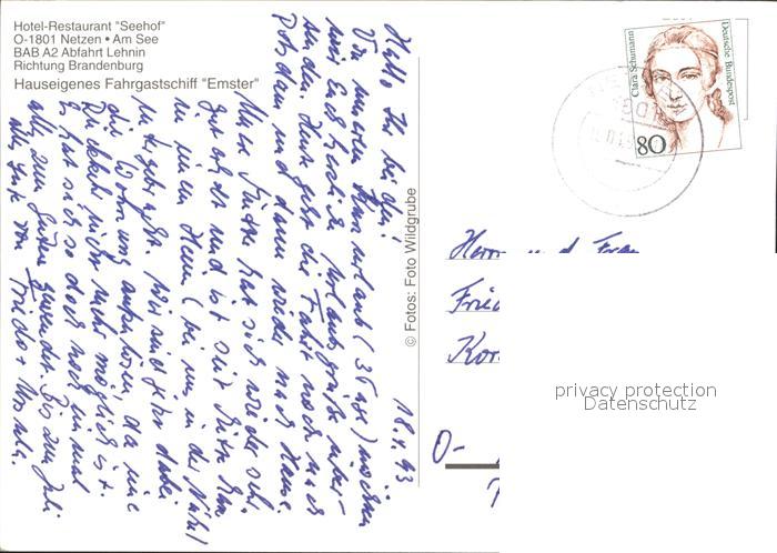 72402109 alte Postkarte Netzen Hotel Restaurant Seehof Anlegestelle und Personenschiff postalisch gelaufen Erhaltung siehe scans KatCode: 11110012069306