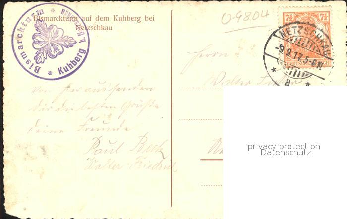 42251853 alte Postkarte Netzschkau Bismarckturm auf dem Kuhberg postalisch gelaufen Erhaltung siehe scans KatCode: 11110014178400