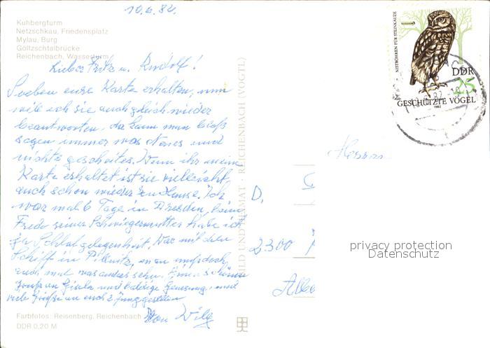 72279873 alte Postkarte Netzschkau Kuhbergturm Friedensplatz Burg Mylau Goeltzschtalbruecke Reichenbach Wasserturm postalisch gelaufen Erhaltung siehe scans KatCode: 11110014178400