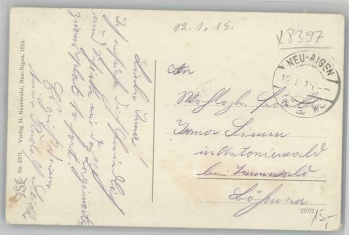 Neu-Aigen Jagdschloss Feldpost x 1915
