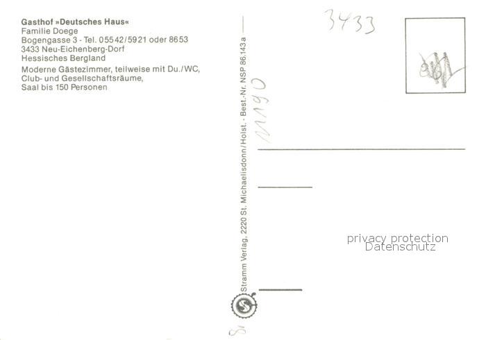 73649295 Neu-Eichenberg Gasthof Deutsches Haus Restaurant Fremdenzimmer postalisch nicht gelaufen Erhaltung siehe scans [FriedD77] KatCode: 11110006636009