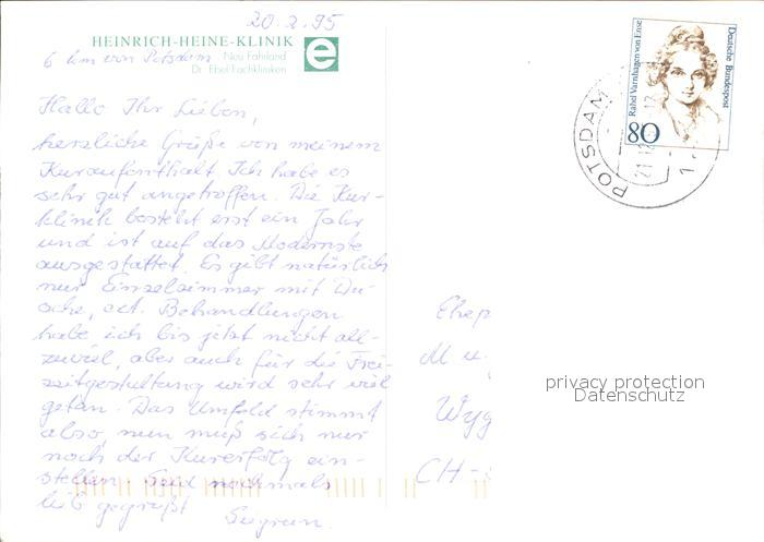 72585752 alte Postkarte Neu Fahrland Fliegeraufnahme Heinrich-Heine-Klinik postalisch gelaufen Erhaltung siehe scans [LiesaD40] KatCode: 11110012054000