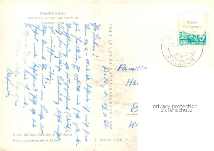 73038016 alte Postkarte Neu Fahrland Heinrich Heine Sanatorium Rosengarten postalisch gelaufen Erhaltung siehe scans [KathaD81] KatCode: 11110012054000