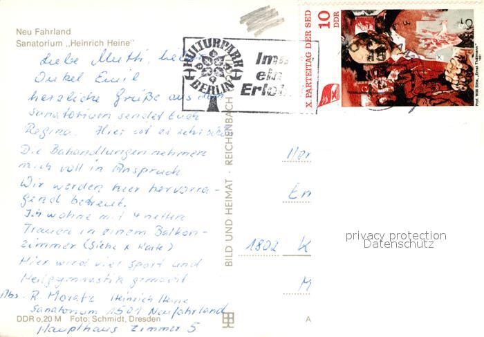 72987221 alte Postkarte Neu Fahrland Sanatorium Heinrich Heine postalisch gelaufen Erhaltung siehe scans [WerneD78] KatCode: 11110012054000