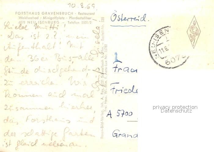 73123060 alte Postkarte Neu-Isenburg Fliegeraufnahme Forsthaus Gravenbruch postalisch gelaufen Erhaltung siehe scans [KathaD81] KatCode: 11110006438009
