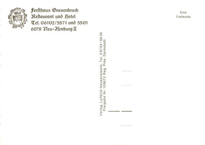 73885442 Neu-Isenburg Forsthaus Gravenbruch Restaurant und Hotel postalisch nicht gelaufen Fliegeraufnahme Erhaltung siehe scans [FriedD77] KatCode: 11110006438009
