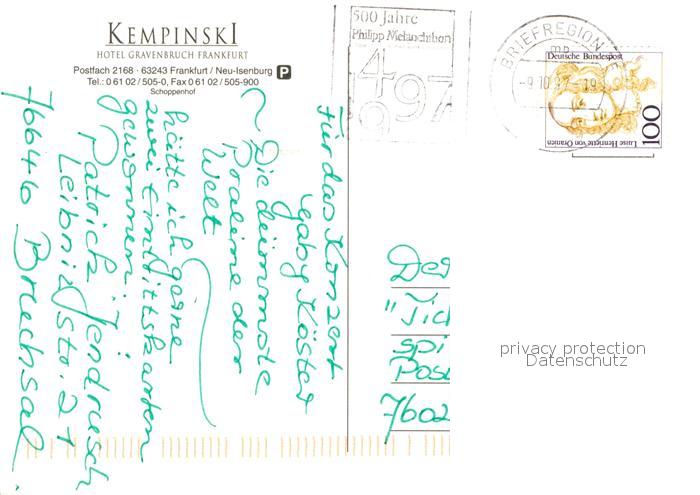 72989743 alte Postkarte Neu-Isenburg Hotel Kempinski Schoppenhof postalisch gelaufen Erhaltung siehe scans [WerneD78] KatCode: 11110006438009