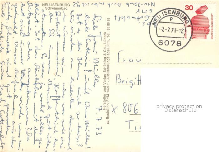 73723346 alte Postkarte Neu-Isenburg Schwimmbad postalisch gelaufen Erhaltung siehe scans [FriedD77] KatCode: 11110006438009