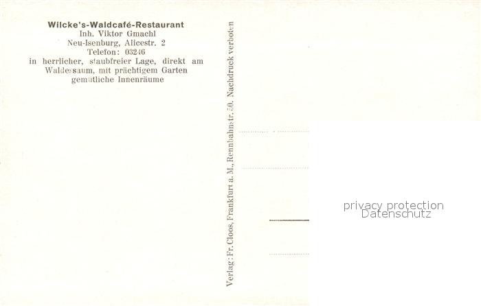 33317567 Neu-Isenburg Waldcafe Rastaurant postalisch nicht gelaufen Erhaltung siehe scans [Darjalle] KatCode: 11110006438009