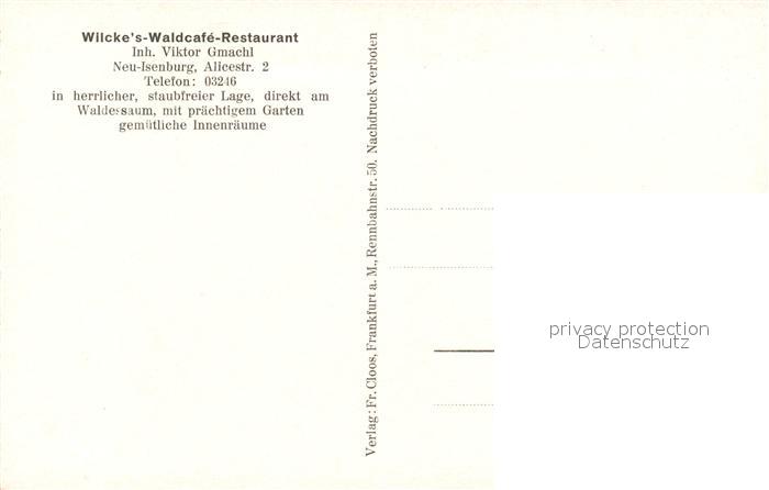 33317566 Neu-Isenburg Waldcafe Restaurant postalisch nicht gelaufen Erhaltung siehe scans [Darjalle] KatCode: 11110006438009