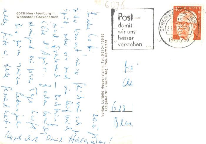 73894098 alte Postkarte Neu-Isenburg Wohnstadt Gravenbruch Fliegeraufnahme postalisch gelaufen Erhaltung siehe scans [WerneD78] KatCode: 11110006438009