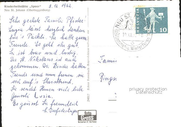 11650585 alte Postkarte Neu St Johann Kinderheilstaette Speer postalisch gelaufen Erhaltung siehe scans KatCode: 11470190585800