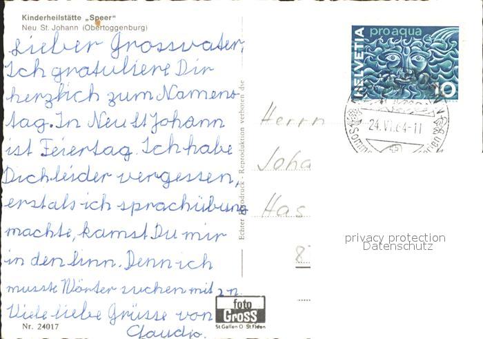 11631182 alte Postkarte Neu St Johann Kinderheilstaette Speer postalisch gelaufen Erhaltung siehe scans KatCode: 11470190585800