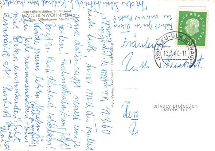 74038651 alte Postkarte NEU-ULM Bayern Jugendheimstaetten St Michael Maedchenwohnheim postalisch gelaufen Erhaltung siehe scans [WerneD78] KatCode: 11110009775135