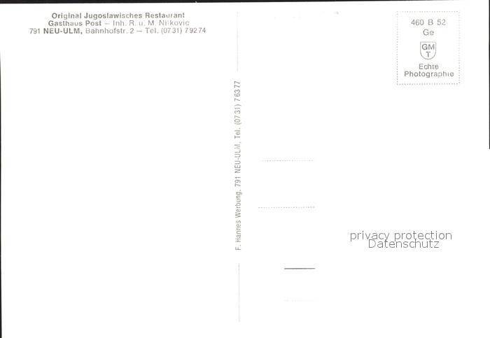 41784553 Neu-Ulm Jugoslawisches Restaurant Gasthaus Post postalisch nicht gelaufen Erhaltung siehe scans KatCode: 11110009775135