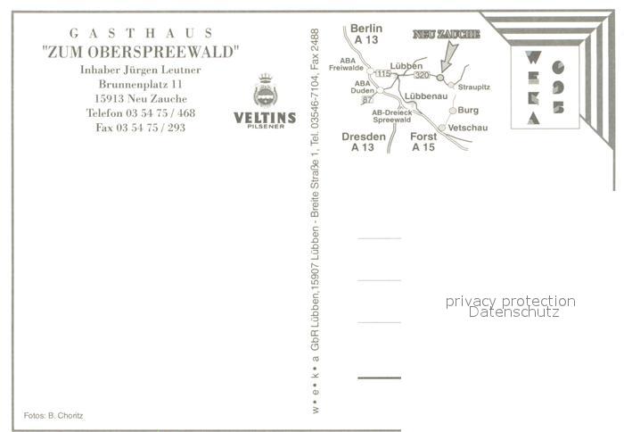 73643600 Neu Zauche Gasthaus Zum Oberspreewald Bar Zimmer Terrasse Kegelbahn postalisch nicht gelaufen Erhaltung siehe scans [WerneD78] KatCode: 11110012061352