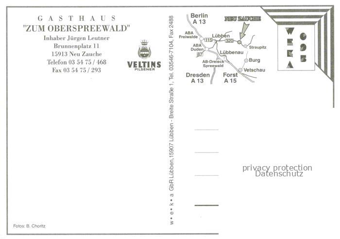 74021085 Neu Zauche Gasthaus zum Oberspreewald Restaurant Theke Fremdenzimmer Kegelbahn Gartenterrasse postalisch nicht gelaufen Erhaltung siehe scans [FriedD77] KatCode: 11110012061352