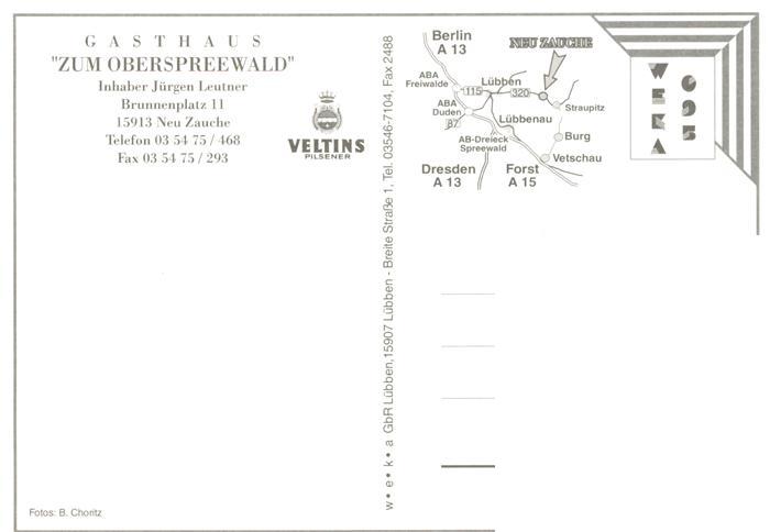 73881664 Neu Zauche Gasthaus Zum Oberspreewald Terrasse Bar Zimmer Kegelbahn postalisch nicht gelaufen Erhaltung siehe scans [WerneD78] KatCode: 11110012061352