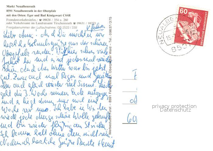 73214925 alte Postkarte Neualbenreuth Blick ins Egerland Fliegeraufnahme Mittelpunktstein Pferdewagen postalisch gelaufen Erhaltung siehe scans [FriedD77] KatCode: 11110009377142